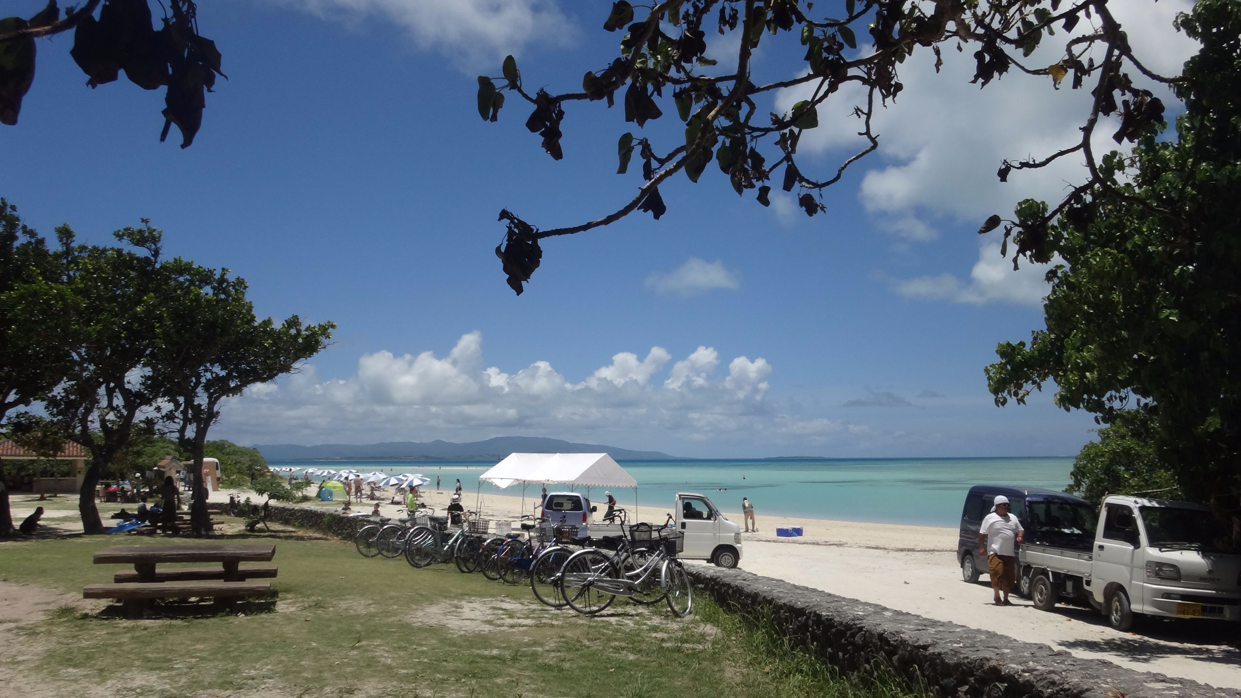 На острове 2 больших пляжа — Kondoi Beach и Star Beach (собственно пляж со знаменитым песком), хотя такой песок есть и на втором пляже. Искать заветные песчинки мне было лень, да и в качестве сувенира с билетом к экскурсии выдали целый пакетик, так что выбор пал на Kondoi Beach, как более живописный, тем более 2ой пляж просматривается с одного края первого. Добраться до пляжа с одной стороны просто, главное найти нужную дорожку с указателями, а вот с этим уже затык, не всегда понятно, в какую сторону необходимо крутить карту. Пляж удивляет уже в самом начале большим пространством парковки для великов. И что самое интересное, никаких ключей, замков, фиксаторов (хотя остров, думаю несколько имеющихся прокатов наизусть знают свои велосипеды и так). И просто обязательно надо запомнить, а лучше сфотографировать внешний вид своего средства передвижения, чтобы потом найти и не потерять во всем многообразии цветов и форм…