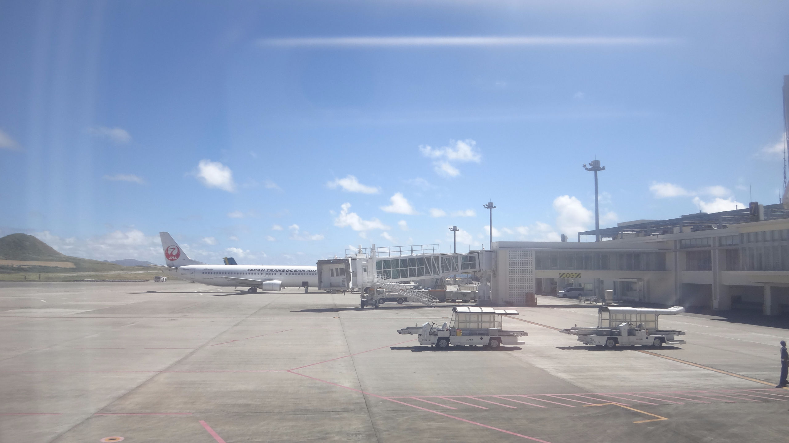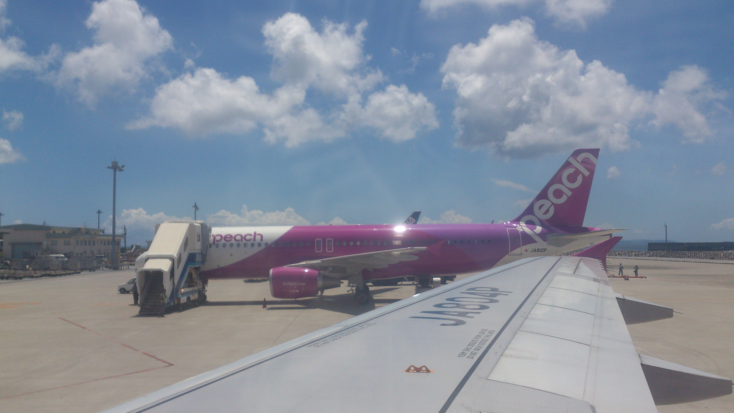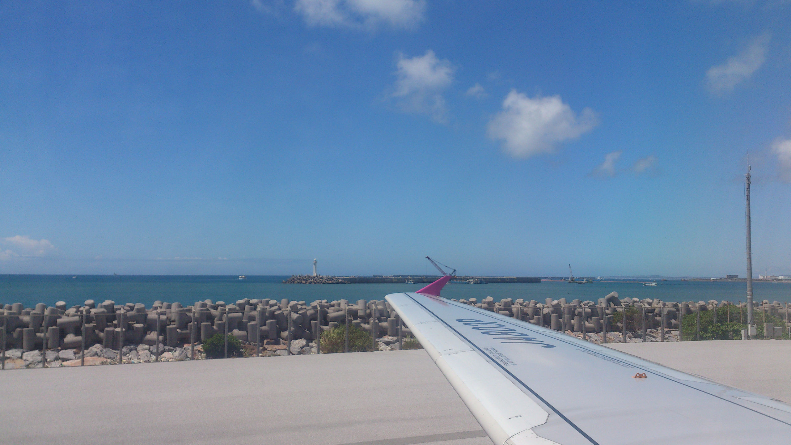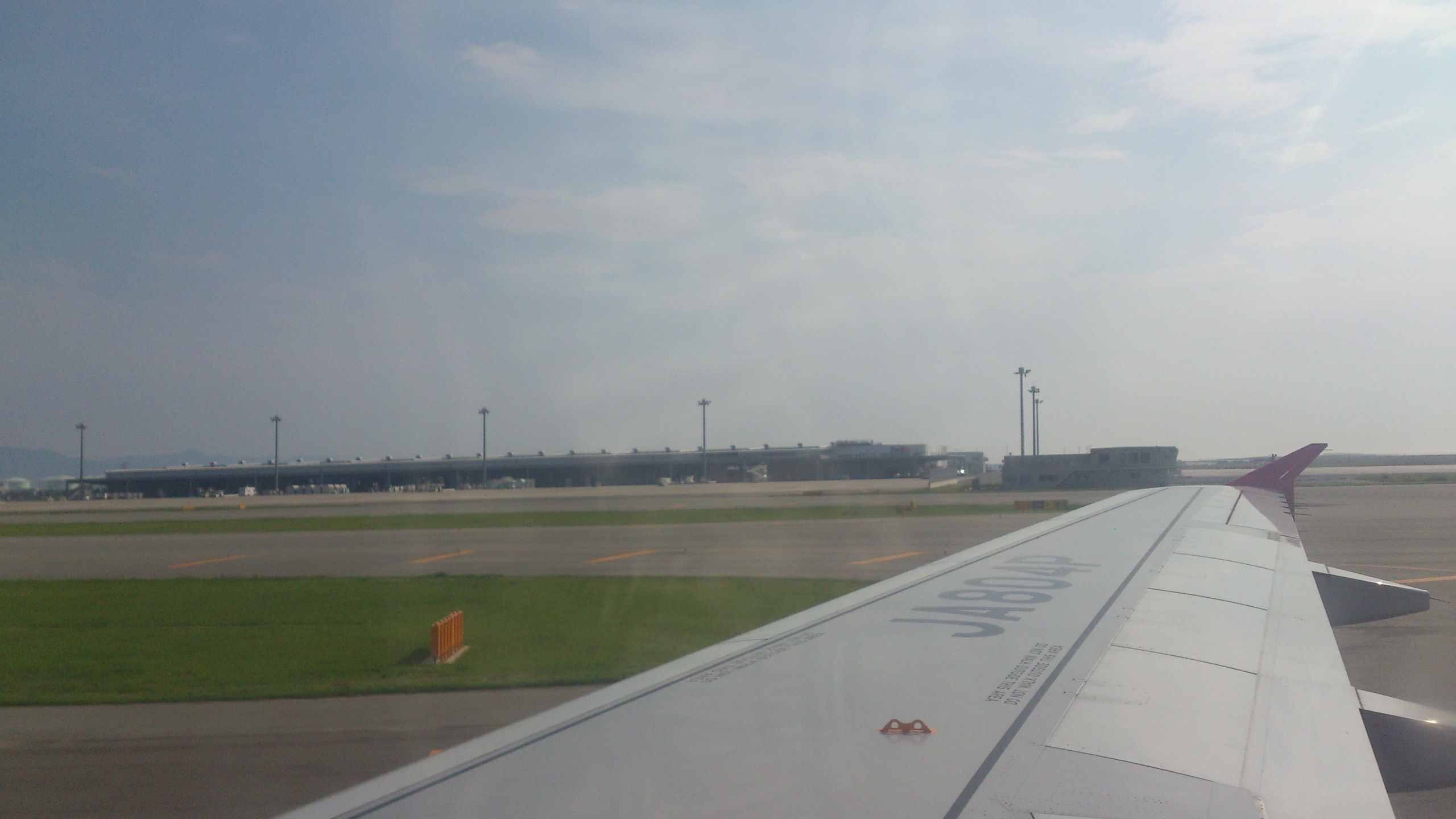 А вообще, 4 перелета, 2 из которых совсем короткие в течение 2х недель — совсем не много. Правда один почти в тайфун, ну да японская авиация и система предупреждения пассажиров на высоте. За пару дней до рейса позвонили, предупредили об отмене, выслали письмо на почту и кучу объявлений на сайте с указанием, что билеты на отмененные рейсы можно либо перенести, причем будут добавлены доп рейсы (чтобы сильно долго ждать свободных мест не пришлось), либо вернуть деньги. Спасибо милейшим хозяевам гостиницы, которые мне по телефону сказали про обстановку с тайфуном в Нахе (столице Окинавы) и успокоили заодно, что тайфун уже ушел. Регистрация на рейс тоже прошла спокойно — по телефону договорилась на нужную дату и время, опоздала правда в аэропорт на час, но тайфун как раз был на подходах к о. Хонсю и Осаке, так что рейс задержали, что было крайне удачно. Пол часа ожидания на удобных пуфиках в зоне вылета при наличии интернета. Несколько часов тряски (правда не постоянной), очень живописные черные тучи и гроза за окном, и привет вечерняя Окинава и после-тайфунная свежесть воздуха, насыщенного влагой и ароматами южной терпкой ночи (ведь чем ближе к экватору, тем темнеет раньше).