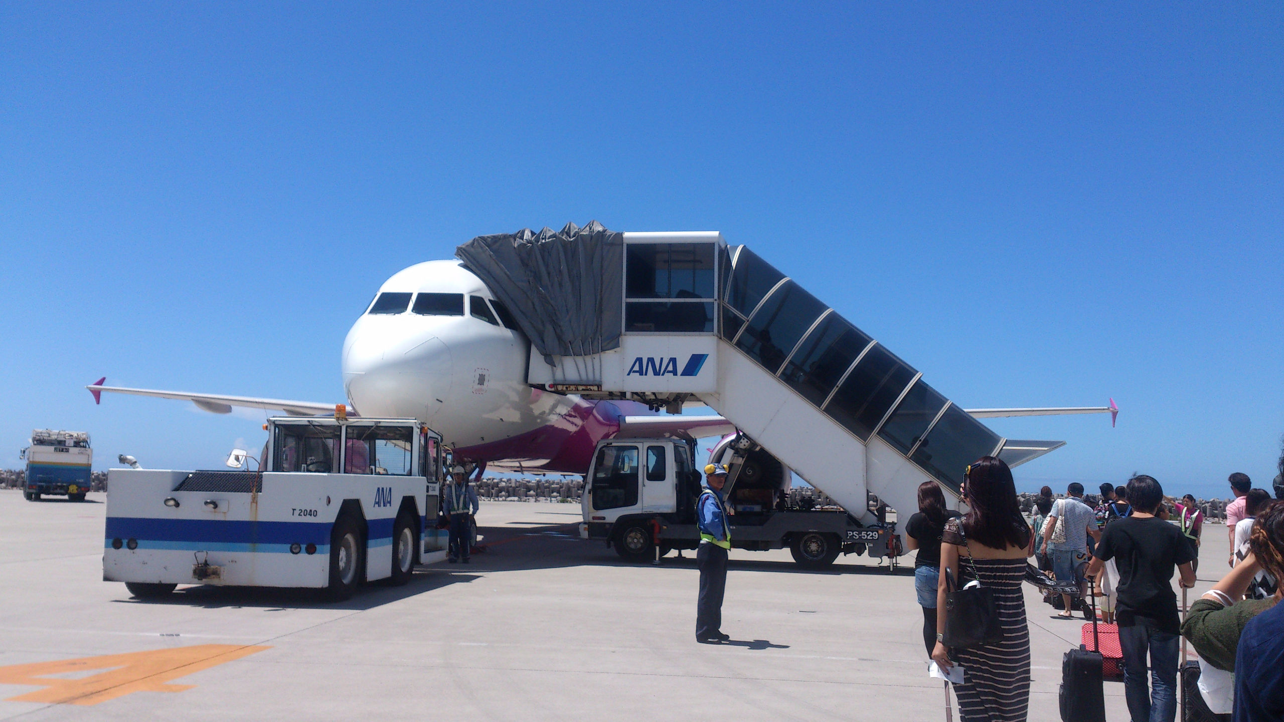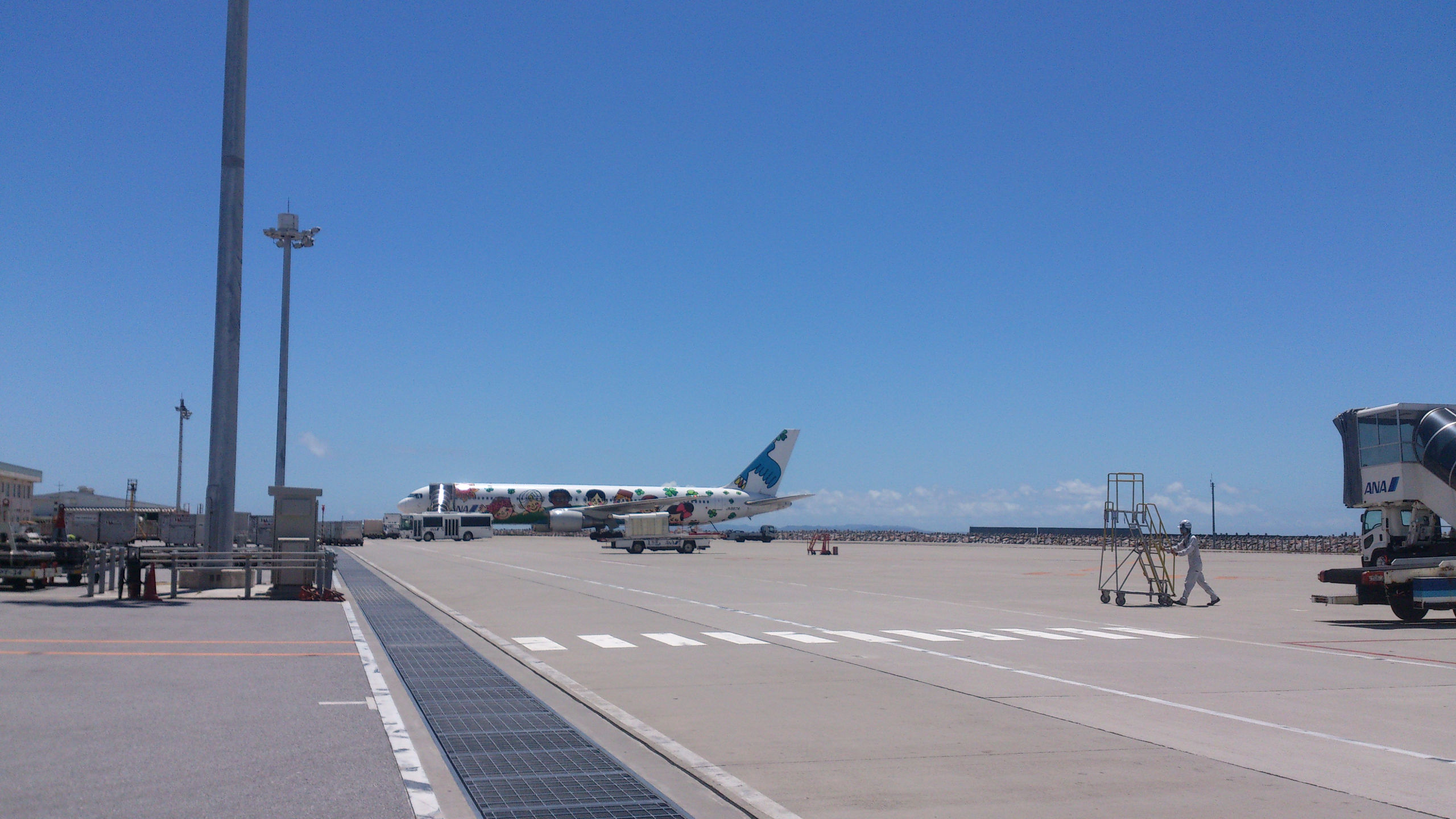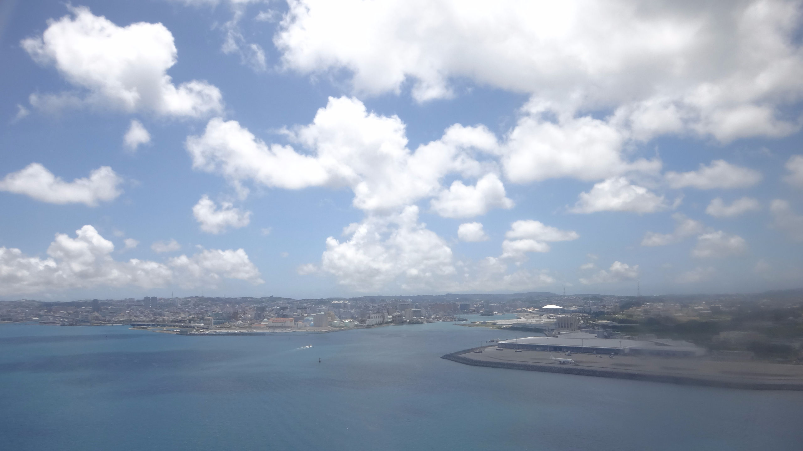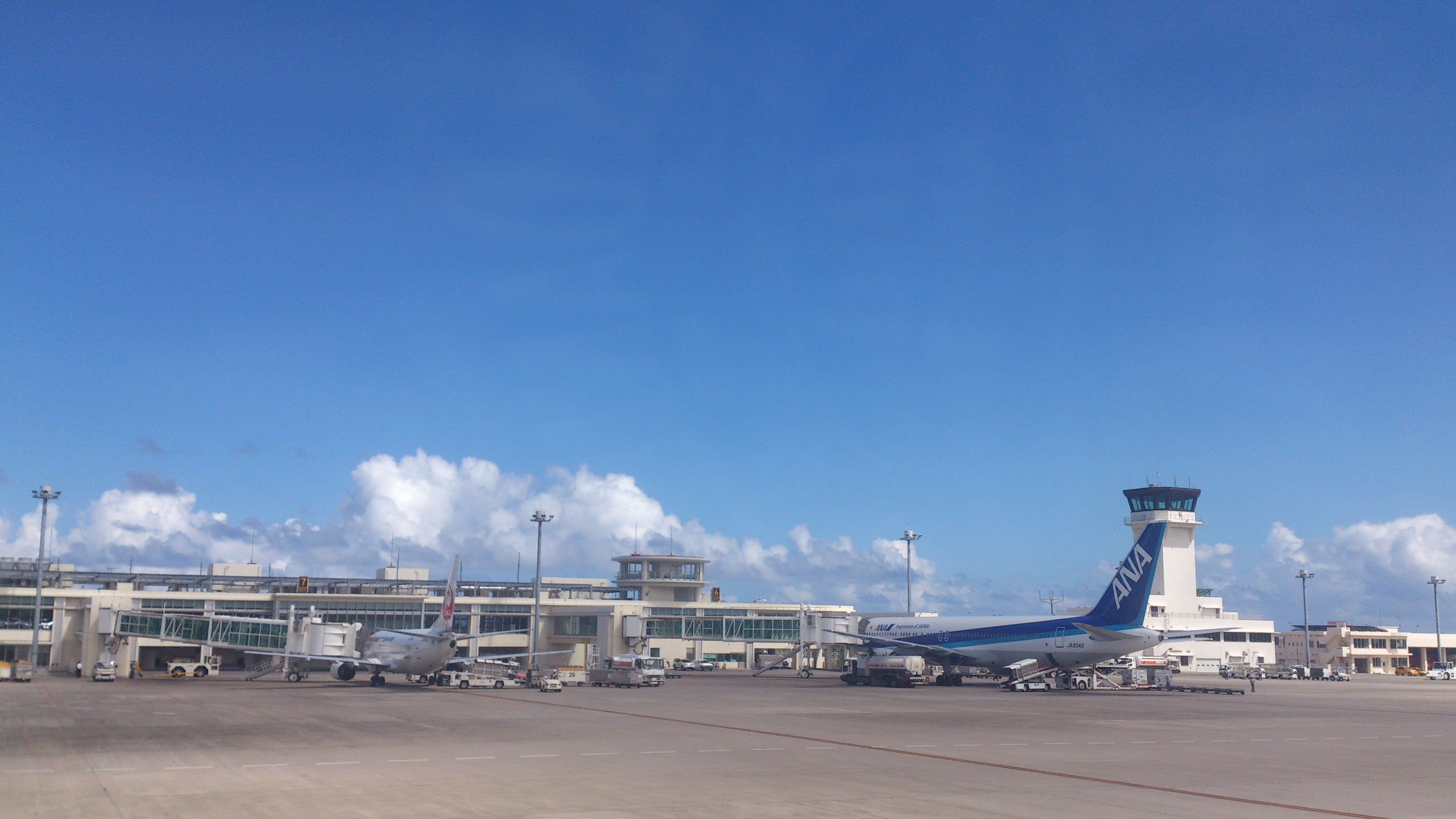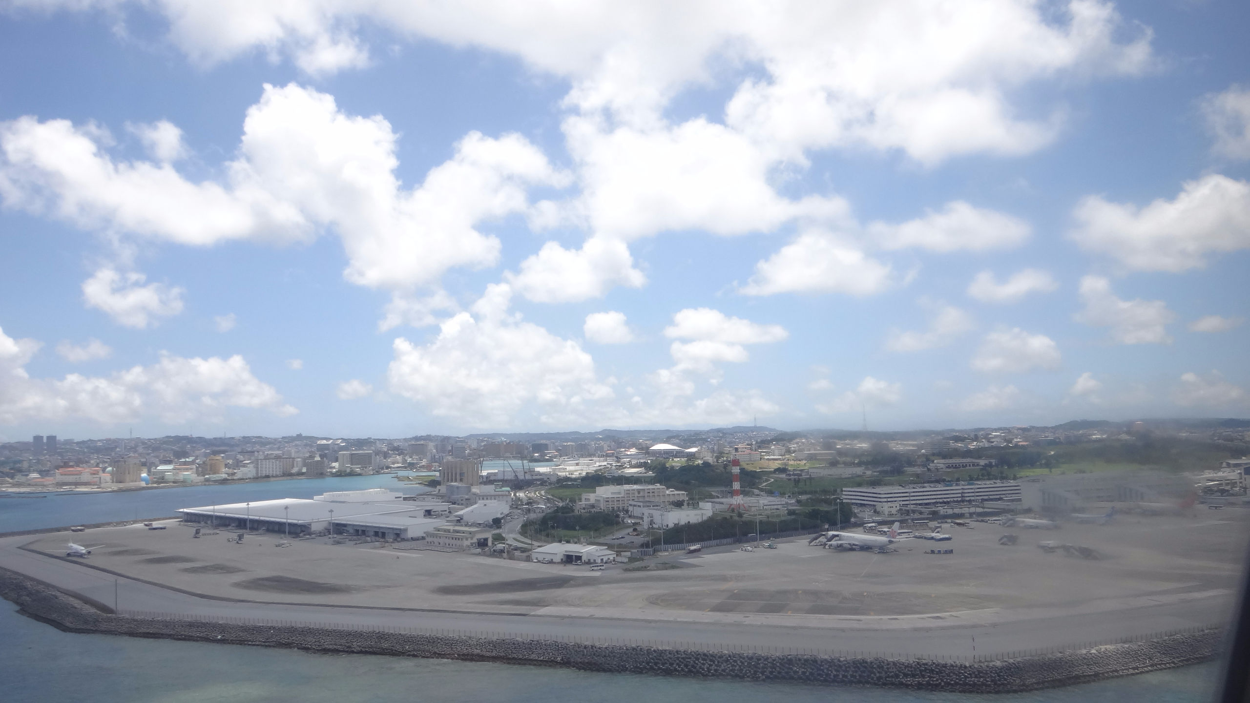 А вообще, 4 перелета, 2 из которых совсем короткие в течение 2х недель — совсем не много. Правда один почти в тайфун, ну да японская авиация и система предупреждения пассажиров на высоте. За пару дней до рейса позвонили, предупредили об отмене, выслали письмо на почту и кучу объявлений на сайте с указанием, что билеты на отмененные рейсы можно либо перенести, причем будут добавлены доп рейсы (чтобы сильно долго ждать свободных мест не пришлось), либо вернуть деньги. Спасибо милейшим хозяевам гостиницы, которые мне по телефону сказали про обстановку с тайфуном в Нахе (столице Окинавы) и успокоили заодно, что тайфун уже ушел. Регистрация на рейс тоже прошла спокойно — по телефону договорилась на нужную дату и время, опоздала правда в аэропорт на час, но тайфун как раз был на подходах к о. Хонсю и Осаке, так что рейс задержали, что было крайне удачно. Пол часа ожидания на удобных пуфиках в зоне вылета при наличии интернета. Несколько часов тряски (правда не постоянной), очень живописные черные тучи и гроза за окном, и привет вечерняя Окинава и после-тайфунная свежесть воздуха, насыщенного влагой и ароматами южной терпкой ночи (ведь чем ближе к экватору, тем темнеет раньше).